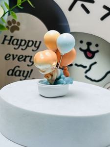 青い風船を 3 つ抱えた泣いている赤ちゃん