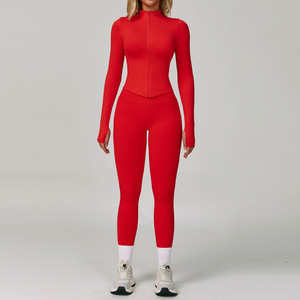 クロスボーダーシームレスタイトヨガスーツウエスト痩身速乾フィットネスウェアアウトドアランニングスポーツ3点セット7790