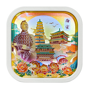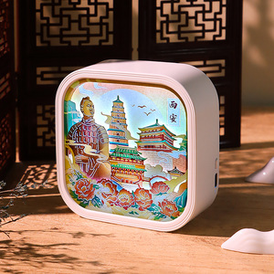 小さなミニ正方形の紙彫刻ランプ 3D 立体的な光と影の組み合わせ、文化的で創造的な国民的トレンドのギフト、デスクトップの古代スタイルのお土産装飾品