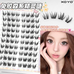 XOYO 接着剤不使用のフォレストエルフつけまつげ、妖精のような上まつげ、厚くカール、自然なカールをシミュレート