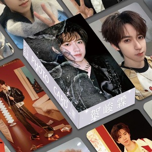 55张不重复新款贺峻霖高颜小卡明星周边三寸拍立得自印小卡片批发
