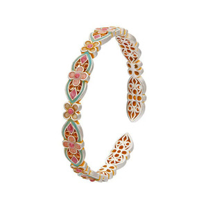 花满筑手镯女新中式国风珐琅彩实心开口手环镀银宫廷风送女友礼物