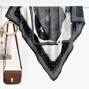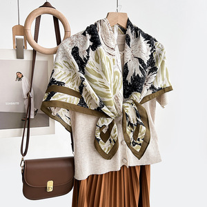 90棉麻油画黑白大方巾女夏季薄款防晒丝巾披肩围巾包头巾妈妈送礼