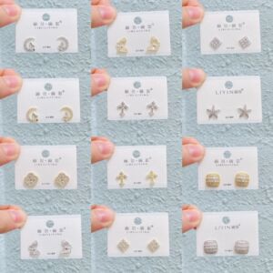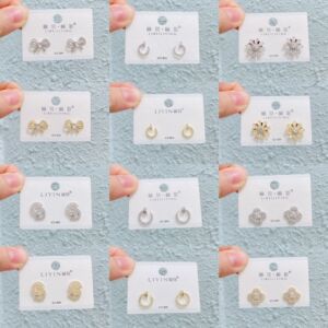 丽银/丽贝丽影耳钉韩系款蝴蝶结几何字母爱心等精致百搭耳饰预售