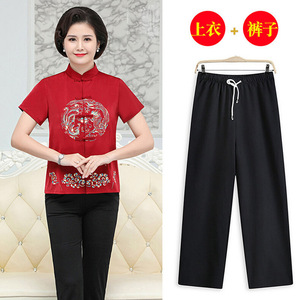 夏装中老年情侣唐装男女短袖生日过寿中式礼服老人民族风薄款套装