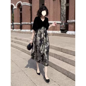 エレガントで軽い高級ファッショナブルなドレス夏の新しい無地襟ミッドスリーブハイウエストジャカードスリムスカート