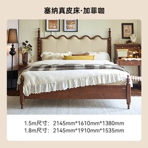 フレンチレトロダブル無垢材アッシュレザーソフトベッドマスターベッドルームラージベッドアメリカンレザー1.8mリップルベッド