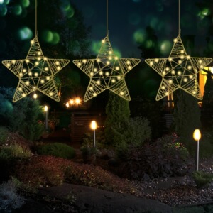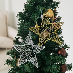 クロスボーダークリスマスデコレーション発光ツリートップスター聖中空ゴールデンスター五芒星アイアンペンダントスター中空