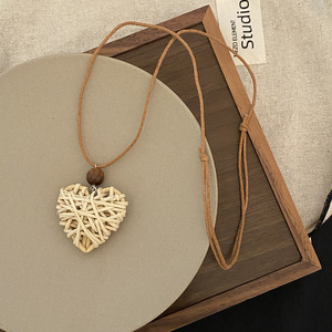 ボヘミアンエスニックスタイルラブムーン編み込みネックレス女性用、シンプルなデザイン、ユニークな個性、夏の海辺のアクセサリー