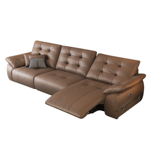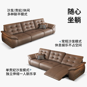 ゼロウォール電動多機能ソファイタリアのミニマリストリビングルームストレート列調節可能な伸縮式ビッグブラックベアレザーソファ