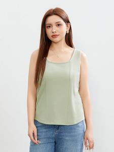 Xianlixiu 大きいサイズの女性の無地の気質インナーとアウターウェアスクエアネックニットベストサスペンダーファットmm2024夏の新スタイル