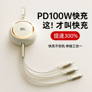 外贸伸缩一拖三超级快充数据线 三合一闪充100W PD快充手机充电线