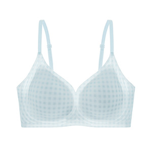 夏超薄型チェック柄アイスシルククールシームレス下着女性の小さな胸プッシュアップサポートリムなし通気性スリングブラジャー