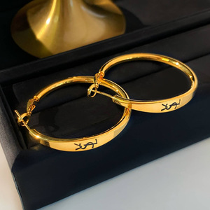 银针欧美字母大圈圈百搭耳环女轻奢高级感复古法式气质耳圈耳饰品