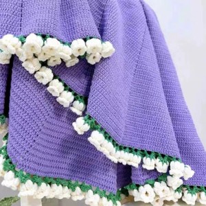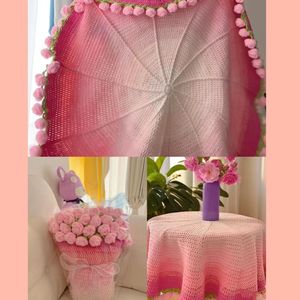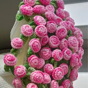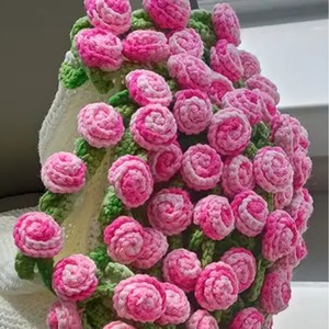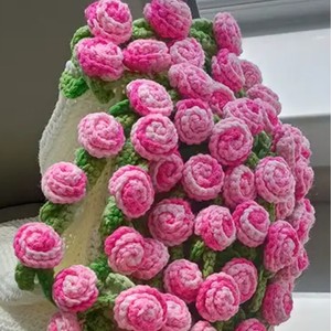 成品玫瑰花束毯子毛线编织手工团钩织花朵毛毯夏季盖毯成品