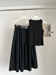 2025年リアルショット、エレガントでシンプルなノースリーブベストとロングスカートのツーピースレディースサマースカートスーツ