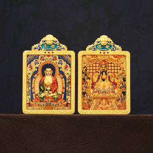 正版新款生肖八大守护神唐卡双面吊坠龙五爷黄铜画框佛牌金箔工艺