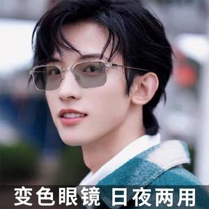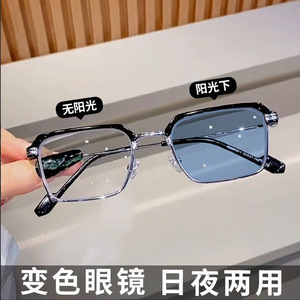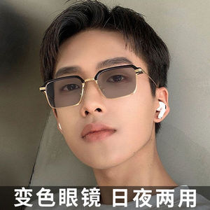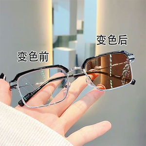 新しい超クールなハーフフレーム色が変わる近視メガネ、男性用、優しくて若々しい、抗青色光フラットメガネ、ビジネス韓国版トレンディ