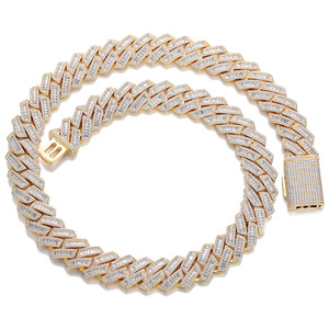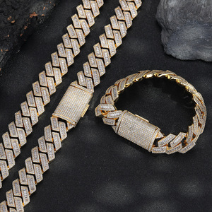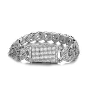 跨境欧美嘻哈古巴混镶T方锆石20mm痞帅小众设计感项链手链