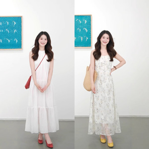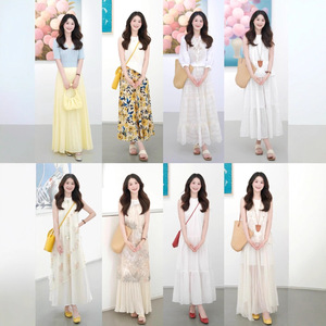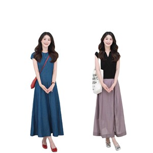 2025年夏季女新款法式温柔风穿搭修身百搭长款淑女圆领收腰连衣裙