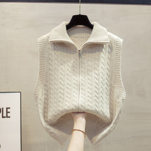 麻花高领拉链针织开衫马甲背心女2025春秋新款宽松外穿坎肩马夹