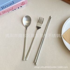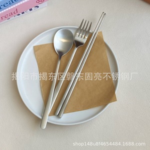砂光韩式304不锈钢牛排刀叉勺长柄勺酒店西餐餐具套装筷子汤勺