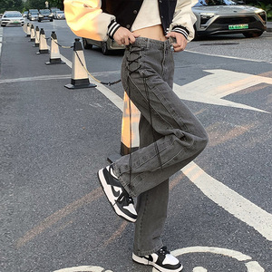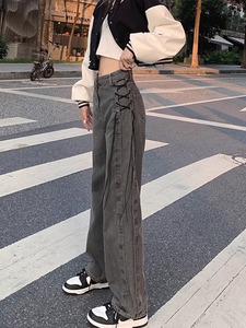女性用スモークグレーストレートジーンズ、女性用夏用ハイウエストナローストレートパンツ、女性用夏用スリムパンツ、女性用スリムパンツ
