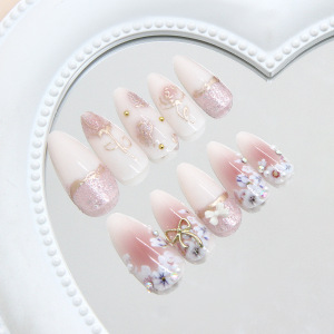 立体彫刻チークリボン、輝くダイヤモンド、優しい気質、ヨーロッパとアメリカンスタイルの女の子向けの取り外し可能なウェアラブルネイル、24個