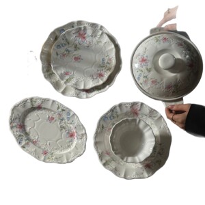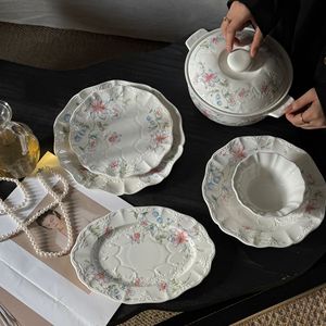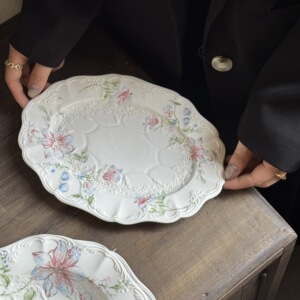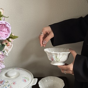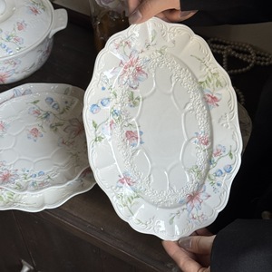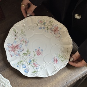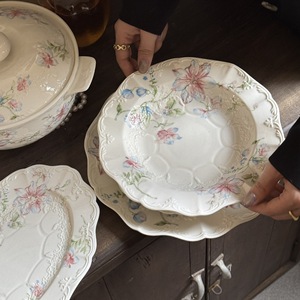 法式 复古重工浮雕白色月光蕾丝花边陶瓷餐盘米饭碗杯碟中古系列
