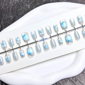 ブルーキャットアイアップルリボンウェアラブルネイルイン韓国ガールネイルアートパッチかわいいショート子供っぽい立体