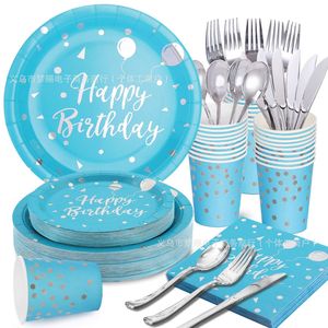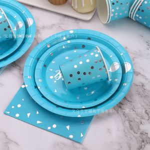 クロスボーダーブルー背景ホットシルバーバルーン使い捨て紙皿子供の誕生日や結婚式パーティー使い捨て食器セット