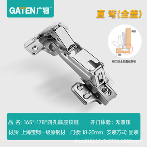 178度3段階油圧緩衝ヒンジ(4穴直線曲げ固定)