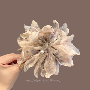 2025 新しいライト高級ファッションラインストーンフラワーヘアピン女性の後頭部クリップ頭飾りエレガントな気質ヘアピンスプリングクリップ