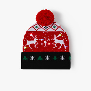 外国貿易クロスボーダーホット販売 LED クリスマス帽子発光クリスマス装飾ウール帽子ライトパーティーニット帽子卸売