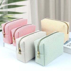 2025 ファッションストライプ化粧品バッグ女性のポータブル防水トイレタリーバッグソフトで軽量シアサッカー化粧品収納袋