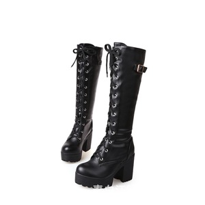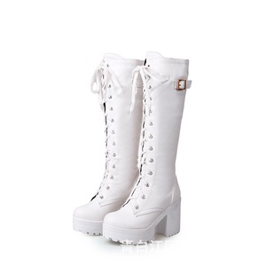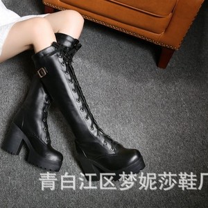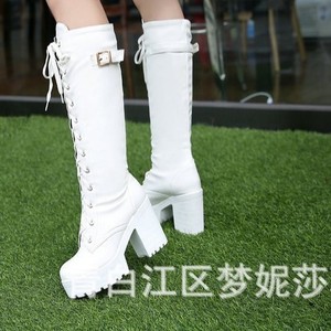 粗跟高筒靴女仿水台高跟长筒靴子系带款大码女靴跨境保暖超高跟