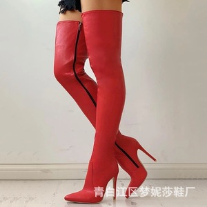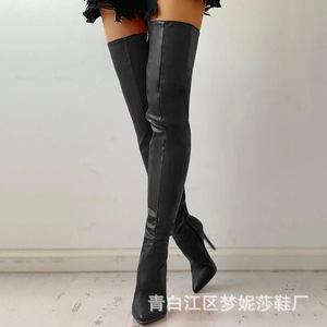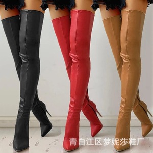 亚马逊外贸尖头侧拉链过膝长靴细高跟大码长筒靴批发冬季爆款