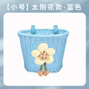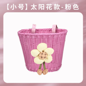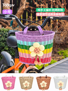 自行车车筐儿童单车复古卡通藤编车篮编织前篮筐溜娃神器车篮子
