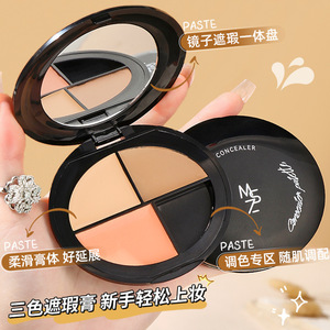 Ming Xizhi シームレス ヌード コンシーラー パレットは、クマ、シミ、ニキビ跡をカバーし、顔の涙溝に潤いを与えます 3 色のコンシーラー