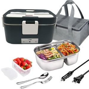 跨境电加热饭盒免注水便当盒午餐便携保温饭盒加热饭菜家车双用