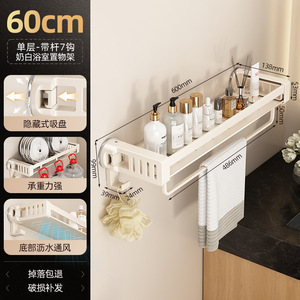 【ポールなし一層】乳白 60cm 7本フック隠し吸盤付き 【お好みに合わせて移動可能】