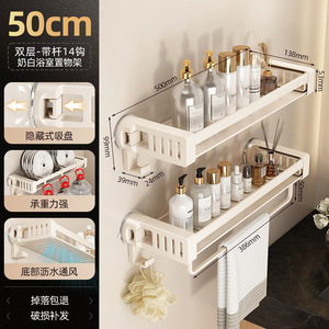 【ポール付き二層】乳白 50cm フック14個付 隠し吸盤付き 【好きなように移動】