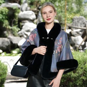 新中式旗袍披肩针织百搭披风仿皮草国风斗篷加厚秋冬秋冬季外套
