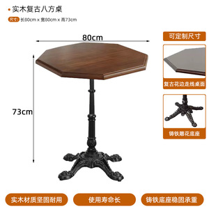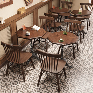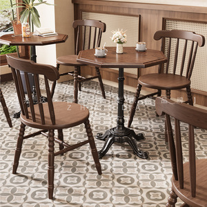 复古西餐厅桌子法式咖啡店实木八边桌简约小圆桌轻奢商用桌子椅子