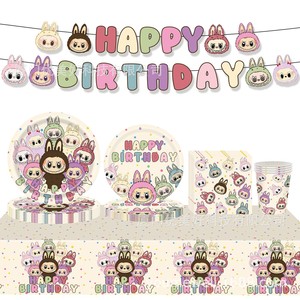 国境を越えた人気のラブブテーマの誕生日パーティーの装飾ラブブ使い捨て紙コップ紙皿食器セット