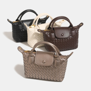 通勤上班百搭新款编织单肩小饺子包时尚水桶包简约百搭女士斜跨包
