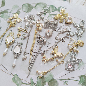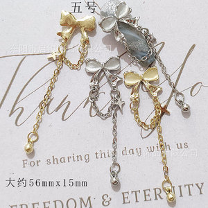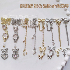 蝴蝶结爱心吊坠合金美甲饰品甜酷海星贝壳十字架流苏指甲配饰批发