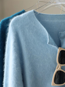 オフシーズンの高級品を拾う! 230 グラム厚みのある起毛ウールカシミヤセーターはさみ襟ラウンドネックカーディガンセーター女性の秋と冬