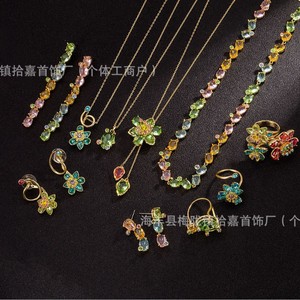 施家ldyllia水晶彩色花项链gema多巴胺饰品轻奢高级感厂家批发