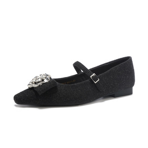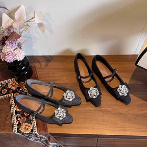 Binli 25 秋フレンチスタイルスクエアトゥラインストーンライト高級ワンストラップメリージェーンシューズウールシューズ春秋冬靴
